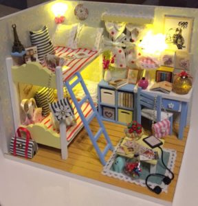 こちらの作品は、イギリス風の部屋をテーマとしたミニチュアハウスです。 ギターや、ゲーム、ダーツなど、とても細かいパーツも多かったのですが、楽しく心を込めて作りました(^^) お部屋の配色が、印象的で男性の方にも喜んで頂け […]