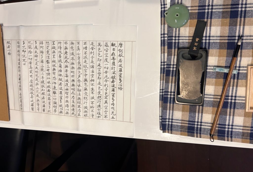 「般若心経」の一文字、一文字を大切に小筆で書いていきます。