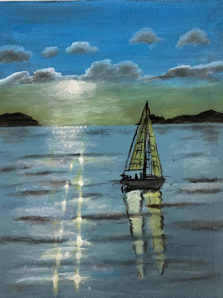 下書きなしで描きすすめてみましたW  光と海の関係を表現することが面白いです。