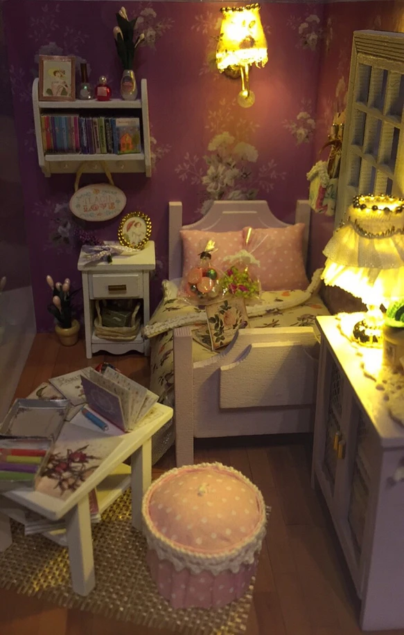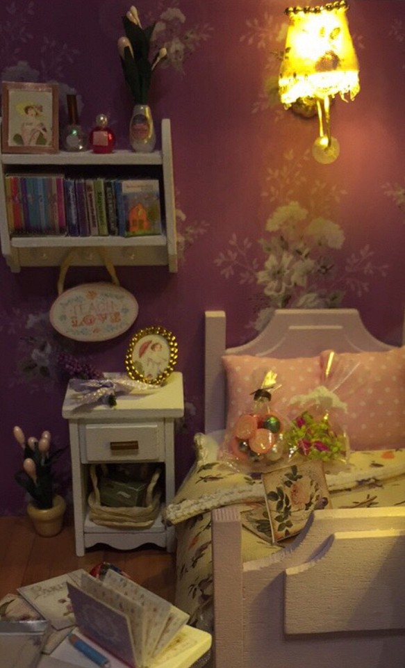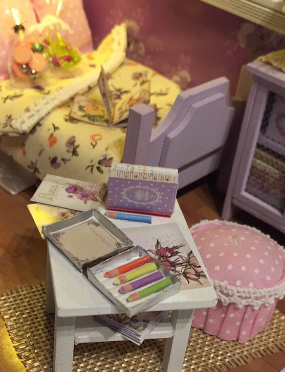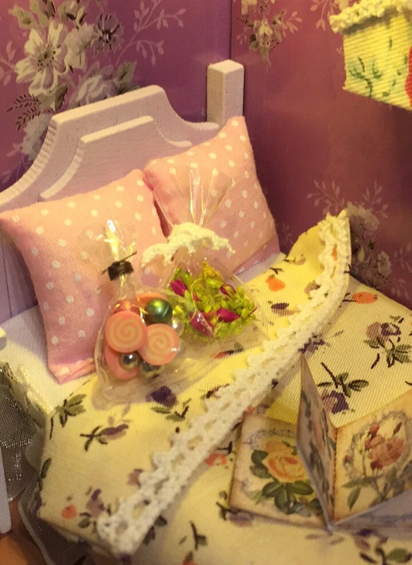 ベッド上のお菓子や本などは、アレンジで追加しています。