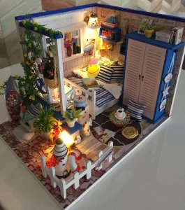 こんにちは♪ 作品を見て頂きまして有難うございます☆ こちらの作品は、サンセットルームをテーマとしたお部屋のミニチュアハウス完成品です。 夕映えが綺麗なとき、お庭の椅子にゆったりと座って、 海岸ビーチから聴こえてくる波の […]